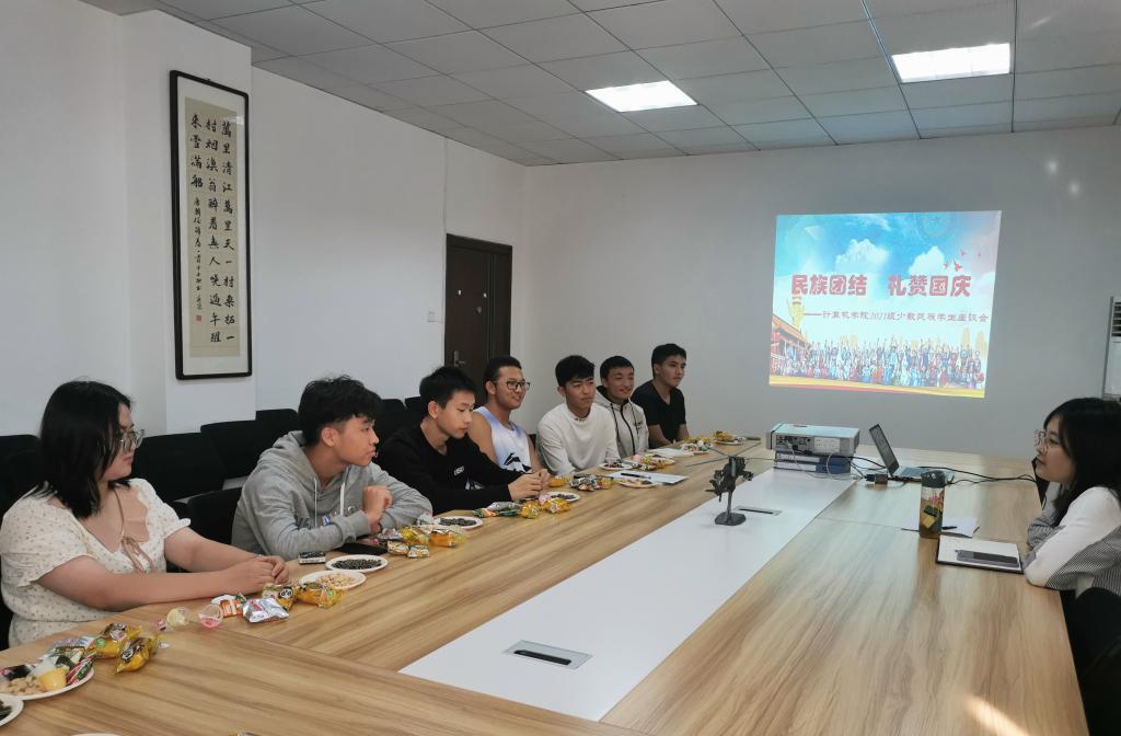 民族团结一家亲,同心共筑中国梦。在国庆节来临之际,为促进民族员工团结友爱、勤奋互助,进一步了解少数民族员工在校学习、生活状况,9月30日下午,太阳成集团tyc122ccvip在教学北楼216召开“民族团结礼赞国庆”2021级少数民族员工座谈会。2021级少数民族员工参加座谈,会议由2021级员工辅导员张雯静主持。