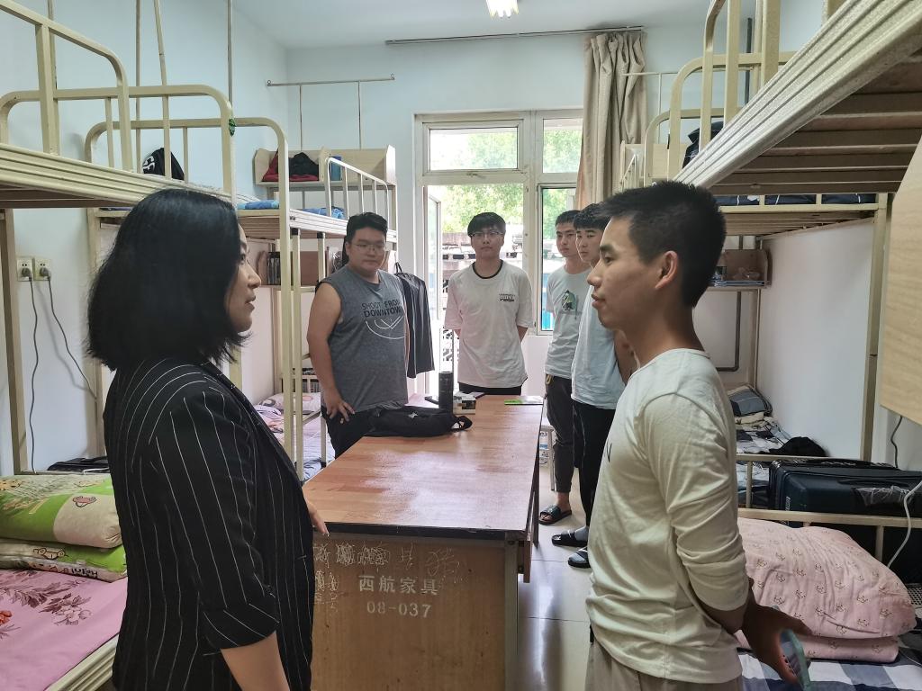 下午,公司领导带领员工辅导员共同深入新生宿舍看望2021级新生,和同学们亲切交谈,对新生的入住环境、入学教育安排表示关心,并嘱托同学们要团结友爱、珍惜大学时光、做好学业规划,让新生们感受到了公司的温暖。