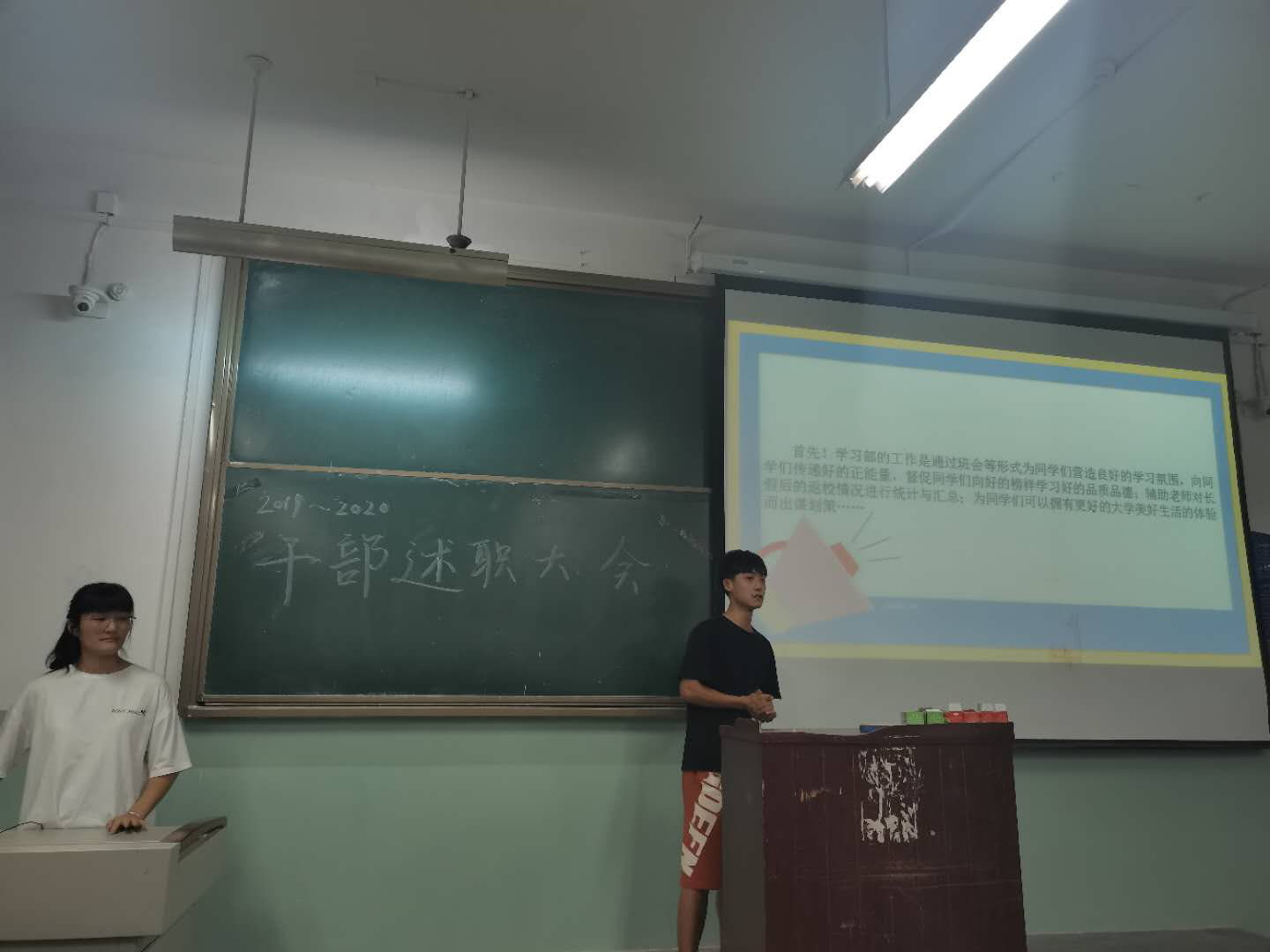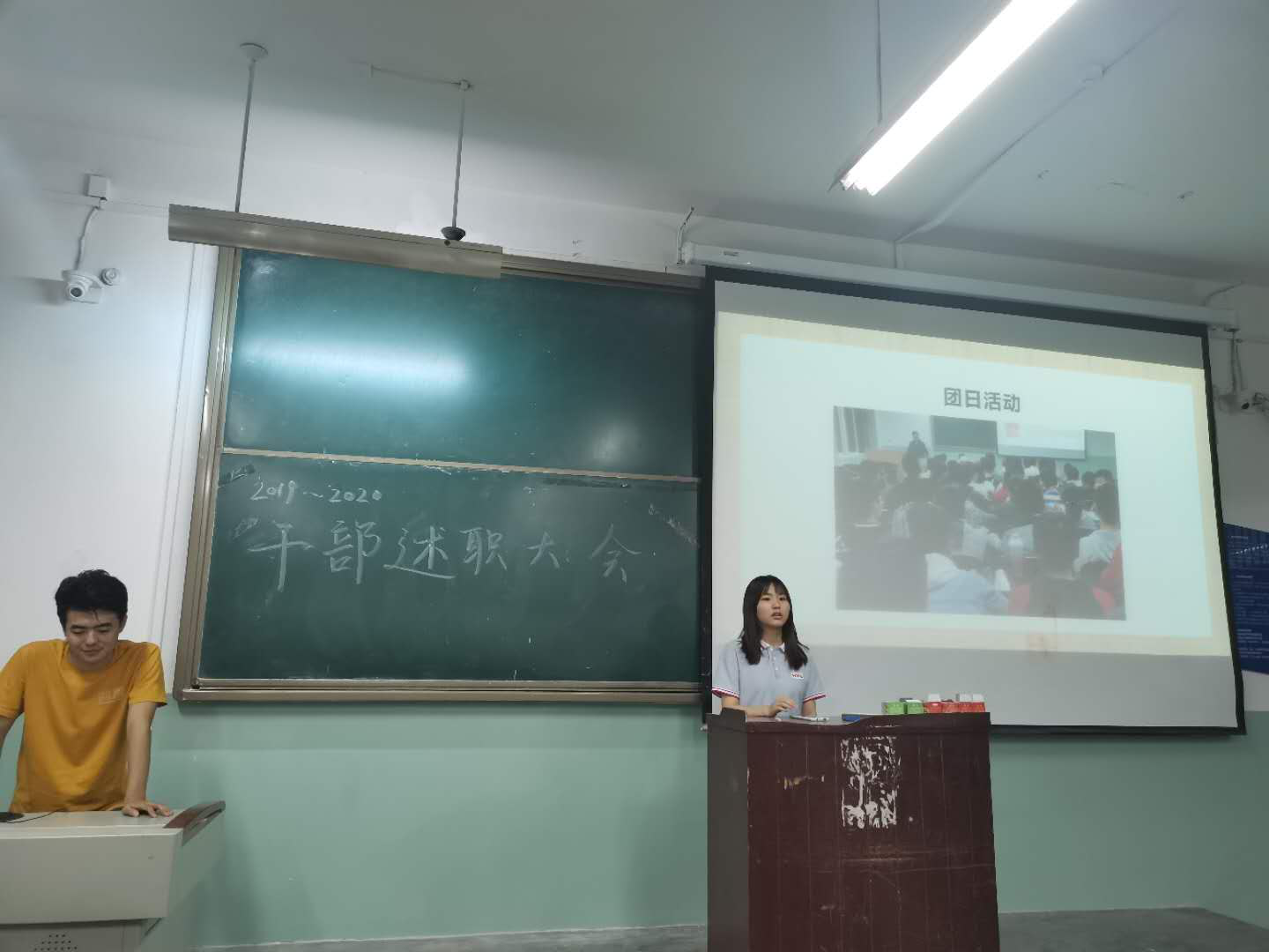 2020年9月9日晚,太阳成集团tyc122ccvip团总支在教学主楼228 召开2019年-2020年度团总支员工干部述职大会暨员工干部培训会,辅导员范程程、侯勇老师及全体员工干部25人参加本次大会。