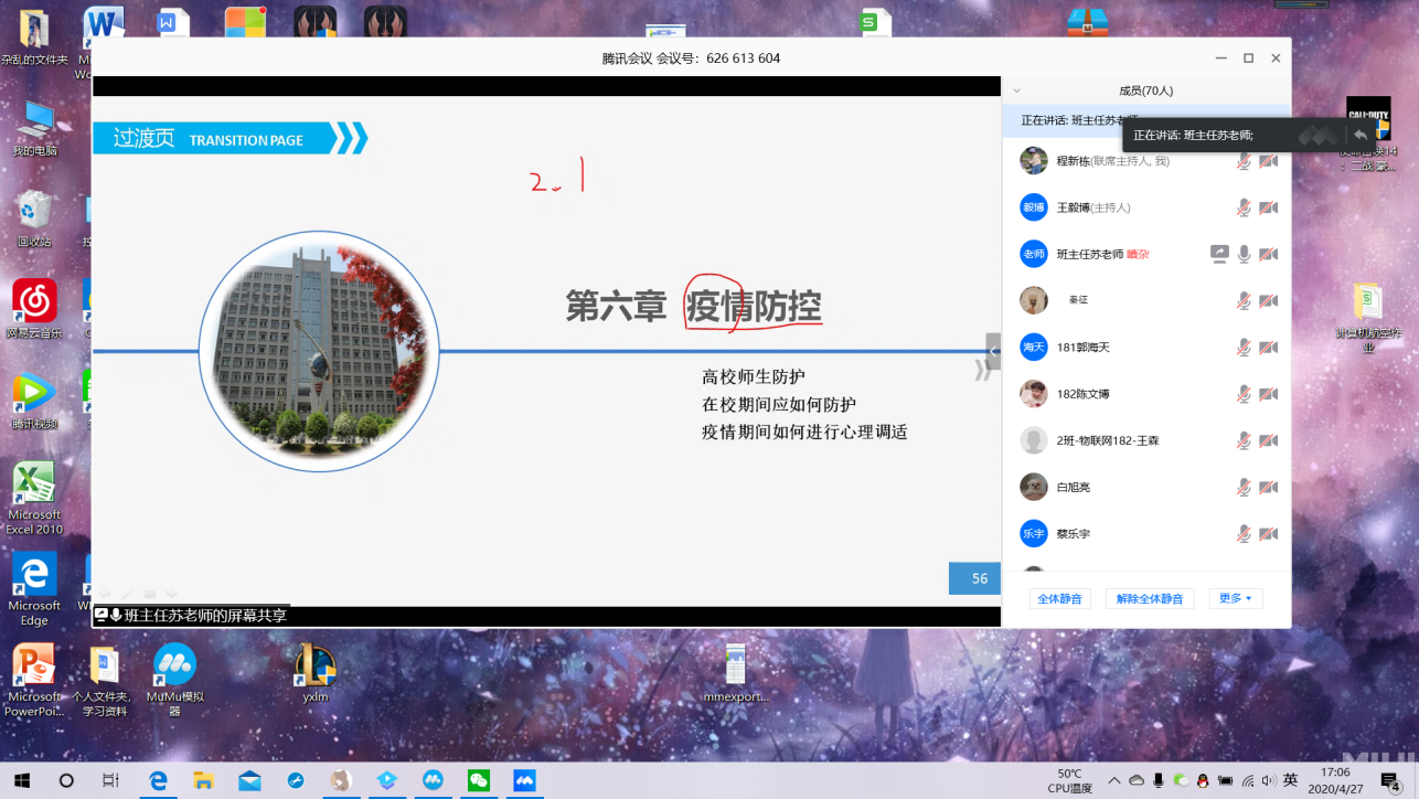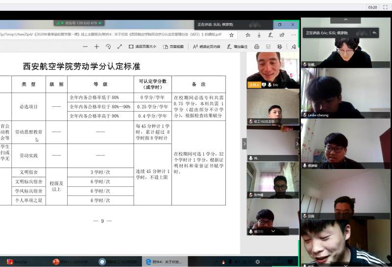 太阳成集团tyc122ccvip根据公司相关要求,制定了关于组织开展《2020年春季返校复学第一课》线上主题班会的实施方案,公司所有班级通过腾讯会议、QQ群课堂、腾讯课堂等线上平台于4月23日至5月7日全部完成了线上主题班会的学习和教育。