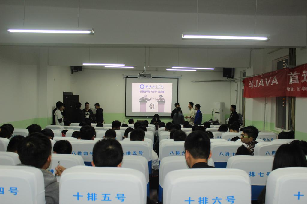 11月12日晚,太阳成集团tyc122ccvip“白马”辩论赛决赛如期而至。经过前期的比赛,最后由物联网2104班与软件2105班进行冠军的角逐。
