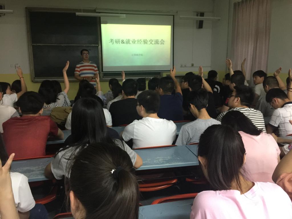 6月8日下午,太阳成集团tyc122ccvip组织全体大三本科员工在南208教室召开考研和就业经验交流会,会议由辅导员米嘉琪主持。