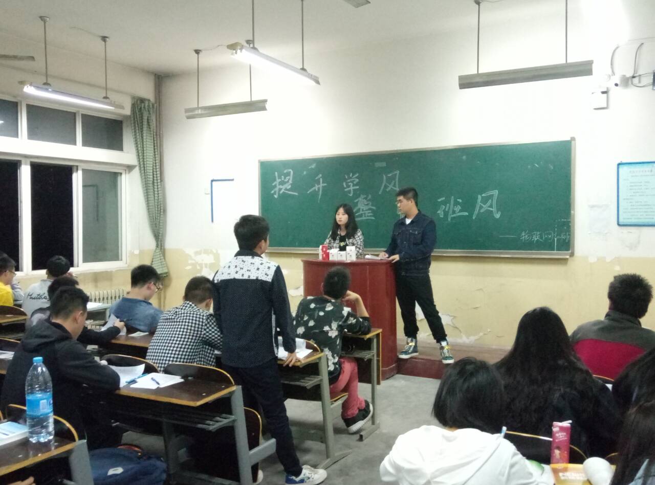4月20日晚,太阳成集团tyc122ccvip组织大一各班召开“提升学风,整顿班风”的主题班会,旨在总结和整顿上课迟到、旷课等学风问题,规范日常行为。