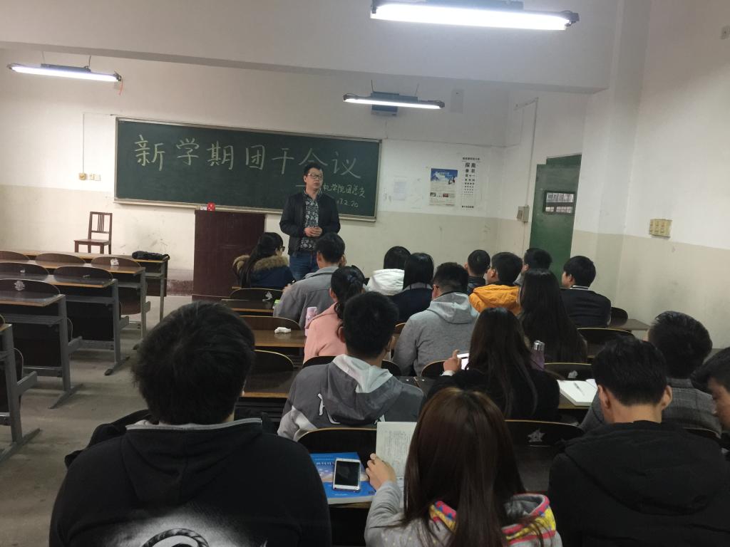 2月20日中午,太阳成集团tyc122ccvip团总支组织38名员工团干在北233教室召开新学期工作会议。会议由团总支书记米嘉琪主持。