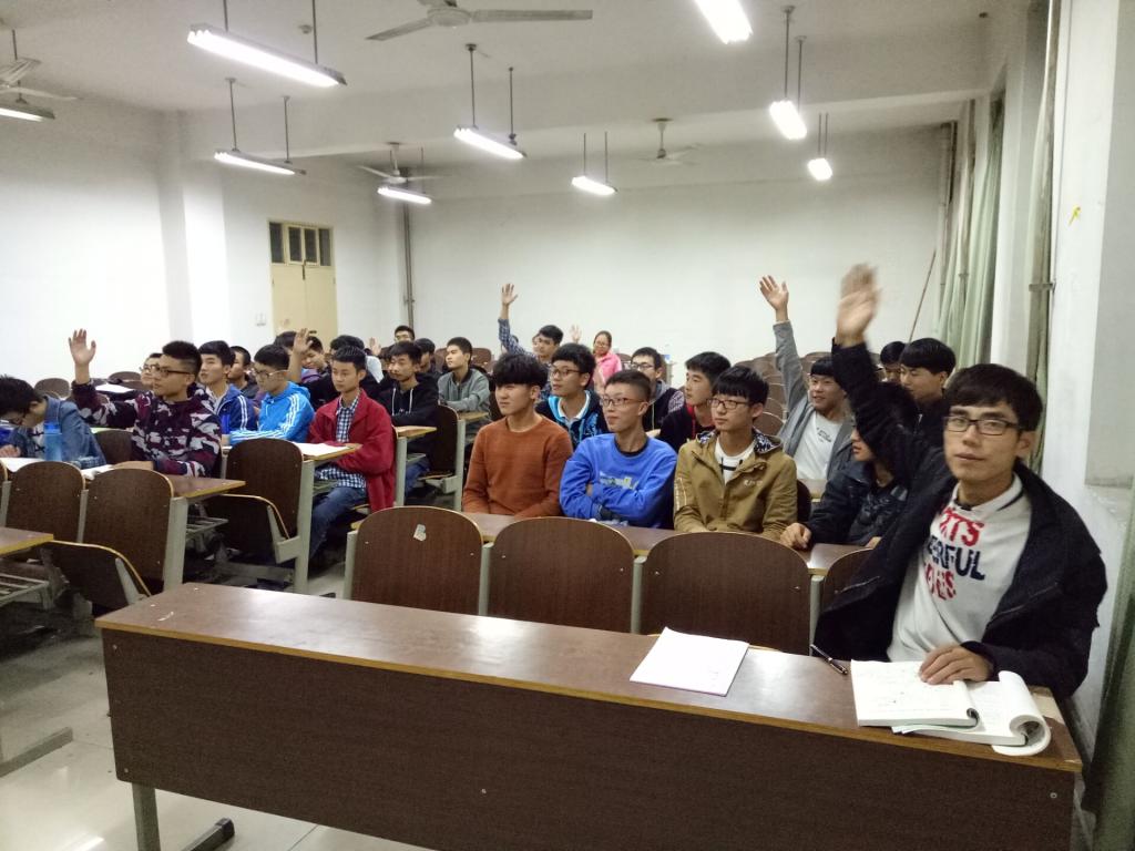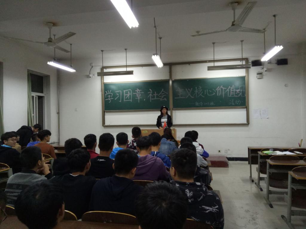 首先,各班主持人带大家学习团章的内容,在“团员的权利和义务”方面让同学们发表自己的看法和感受。接着,通过“击鼓传瓶”的游戏,引入“争做‘有理想、有追求、有担当、有作为、有品质、有修养’的老员工”内容:主持人面对黑板数数,瓶子在同学之间传,当主持人喊停,持瓶者讲述自己作为一个老员工要做什么,有提倡学习为主兼体育锻炼的,也有提倡加入社团活动提高自身综合能力的,同学们各抒己见,现场气氛热烈。最后,通过抽纸条游戏来引入社会主义核心价值观的内容,富强、民主,文明、和谐、自由、平等、公正、法治、爱国、敬业、诚信、友善,同学就自己抽到的内容讲述其意义和观点。
