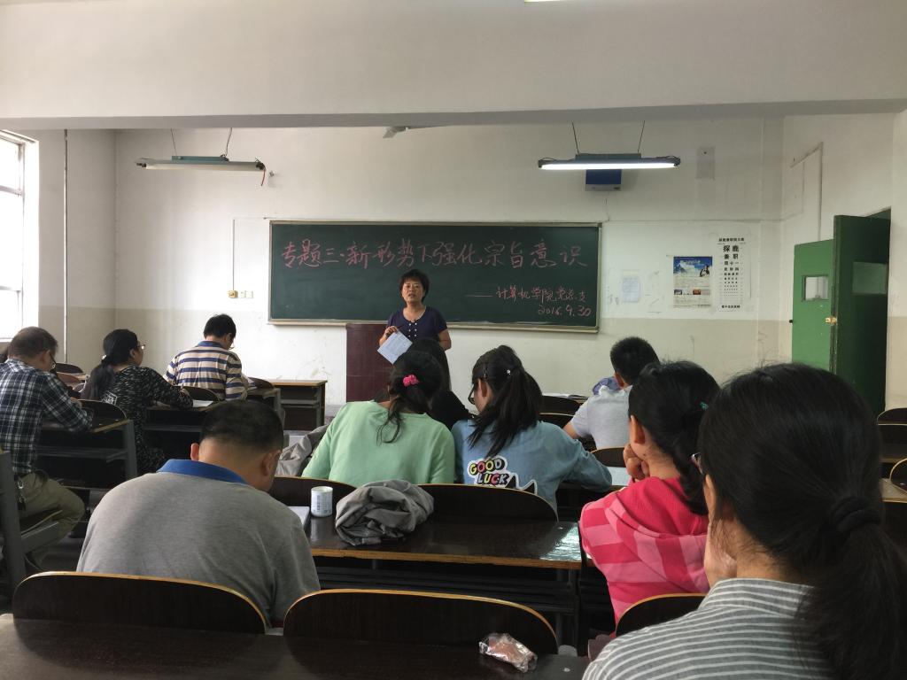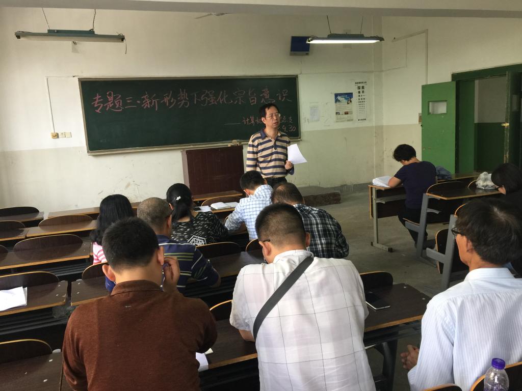 接着,刘晋云书记带领大家学习了全国优秀党员李宝国同志的先进事迹:三十五年如一日的工作态度和心系群众的工作作风,深深触动着每位党员老师的内心。之后,刘书记根据“两学一做”学习计划中专题三的内容——新形势下强化宗旨意识,和大家展开交流。刘书记提到:人民群众是历史的创造者,必须坚持群众路线,深入群众,多交流,发挥人民群众的集体智慧,坚持全心全意为人民服务,希望大家要做到“先天下之忧而忧,后天下之乐而乐”。