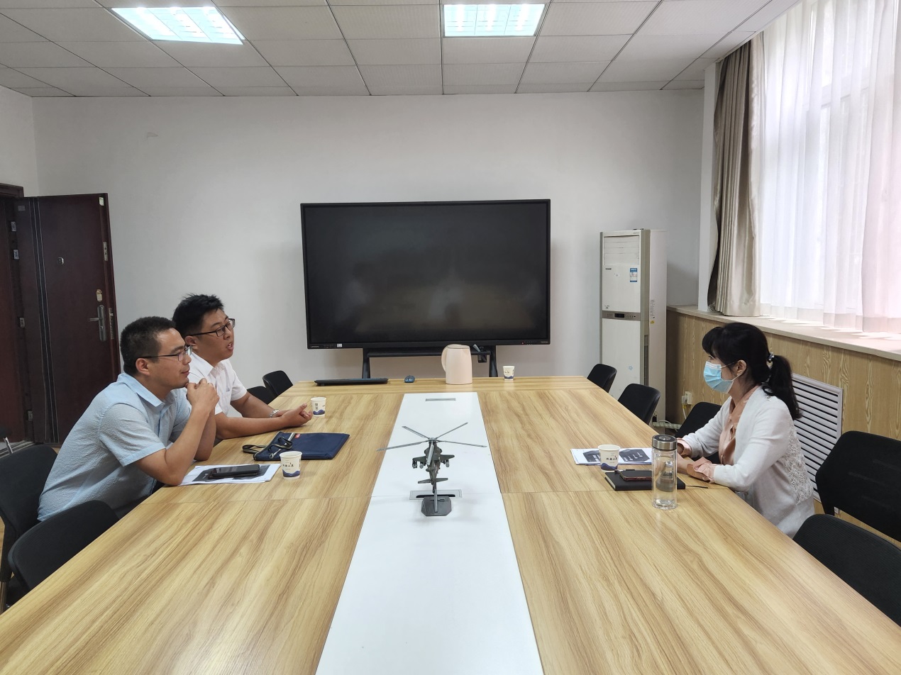 2022年9月30日下午,太阳成集团tyc122ccvip副经理任静与北大青鸟西安实习实训基地负责人张勃一行2人在北216会议室洽谈实习实训合作事项。