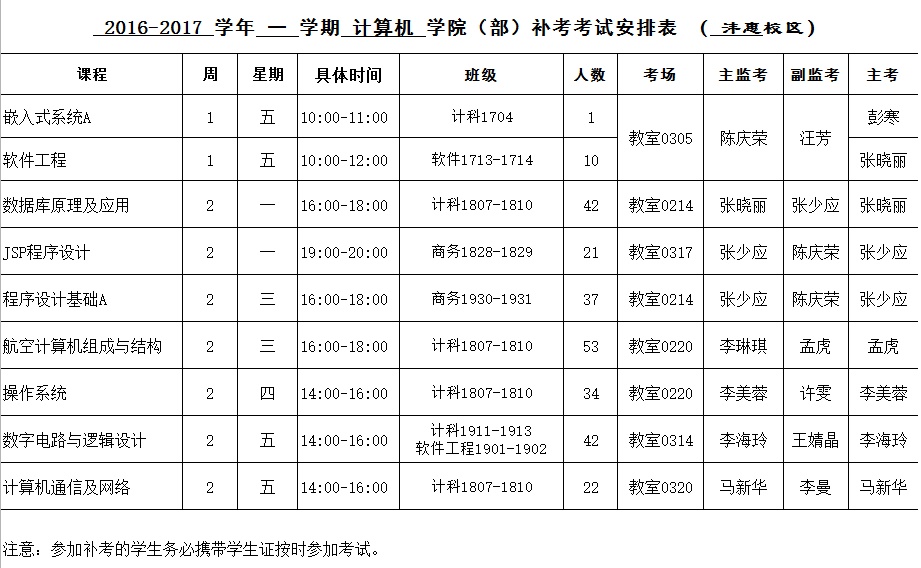 2016-2017-2学期太阳成集团tyc122ccvip补考安排表