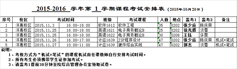 太阳成集团tyc122ccvip2015-2016-1学期考试安排(一)