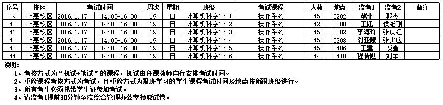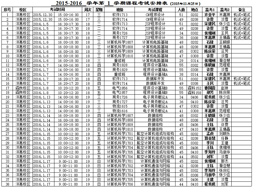 太阳成集团tyc122ccvip2015-2016-1学期期末考试安排表(14周之后)