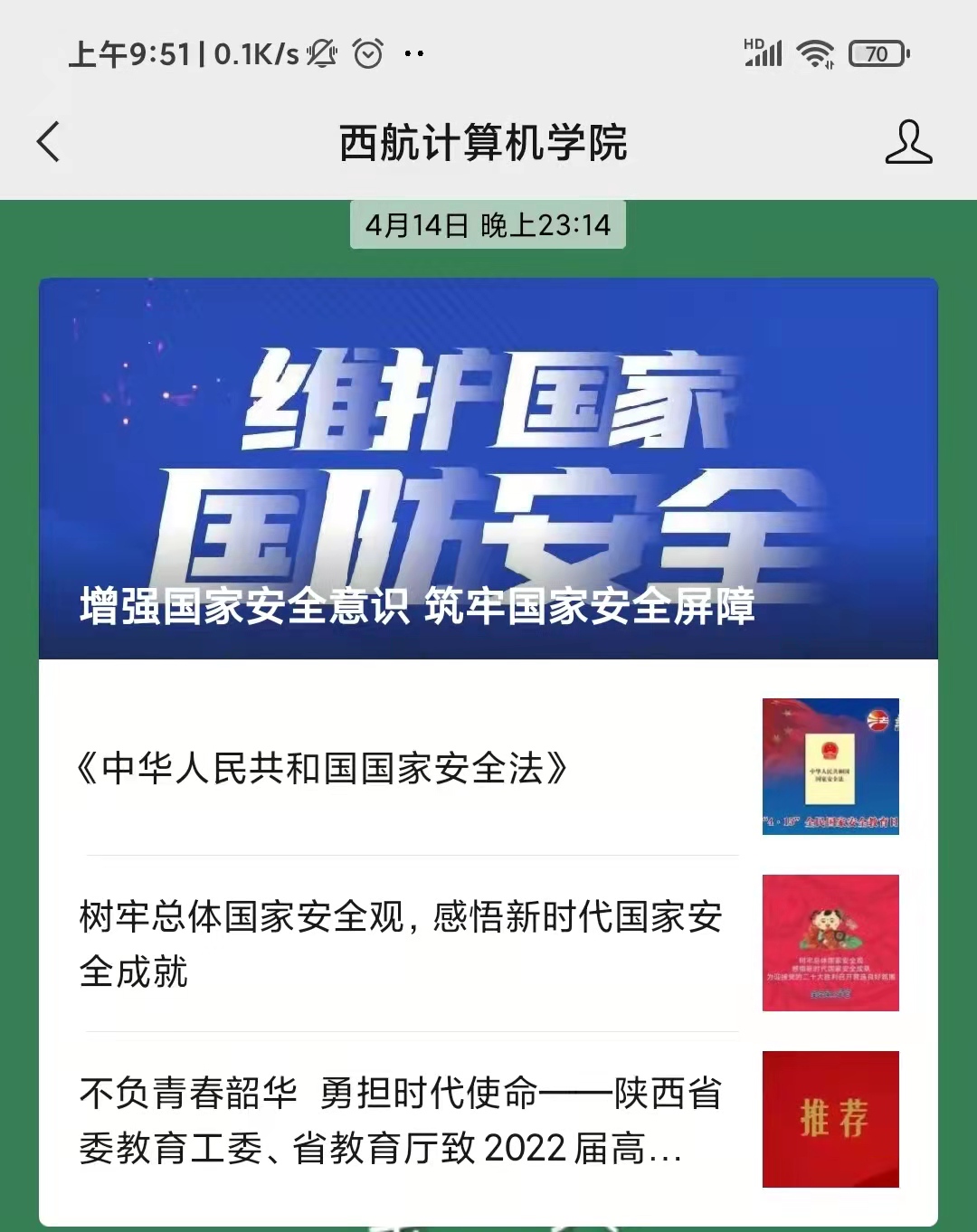 此前,公司党总支已通过微信公众号等推送了多期国家安全法律法规基本知识和新时代国家安全取得的成就等内容,有针对性地做好国家安全宣传工作。接下来,还将组织师生积极参与“全民国家安全教育日专项答题”等线上宣传教育活动,有效引导师生爱国、励志、求真、力行,切实筑牢总体国家安全观。