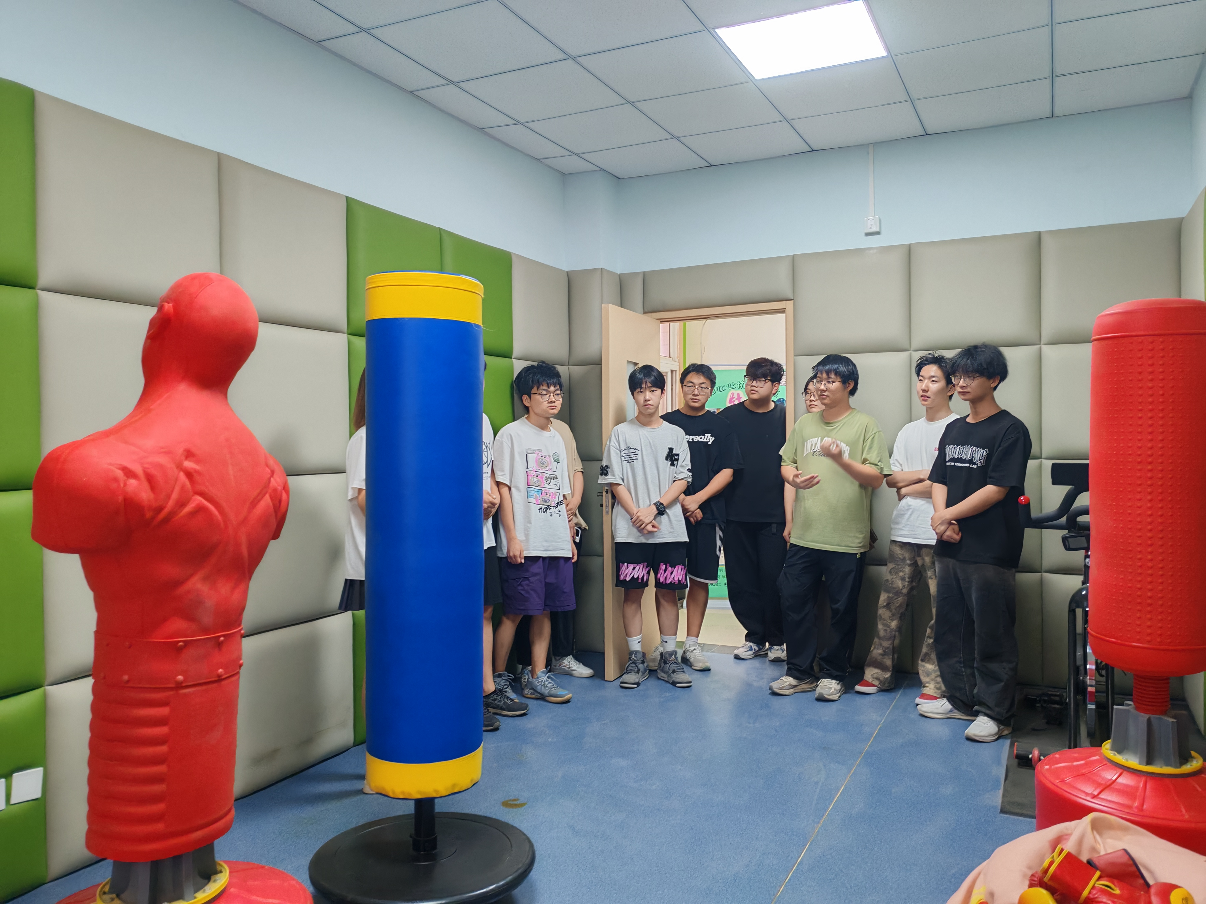 活动中,同学们参观了心理健康教育与咨询中心的个体咨询室、团体辅导室、沙盘室、情绪宣泄室、VR多功能室,同时在沙盘室、情绪宣泄室、VR多功能室进行了沉浸式的体验与互动,发现了自身潜意识压力的来源,释放了自身的压力,感触了不同场景中的心绪变化,学习了科学的心理调节方法。